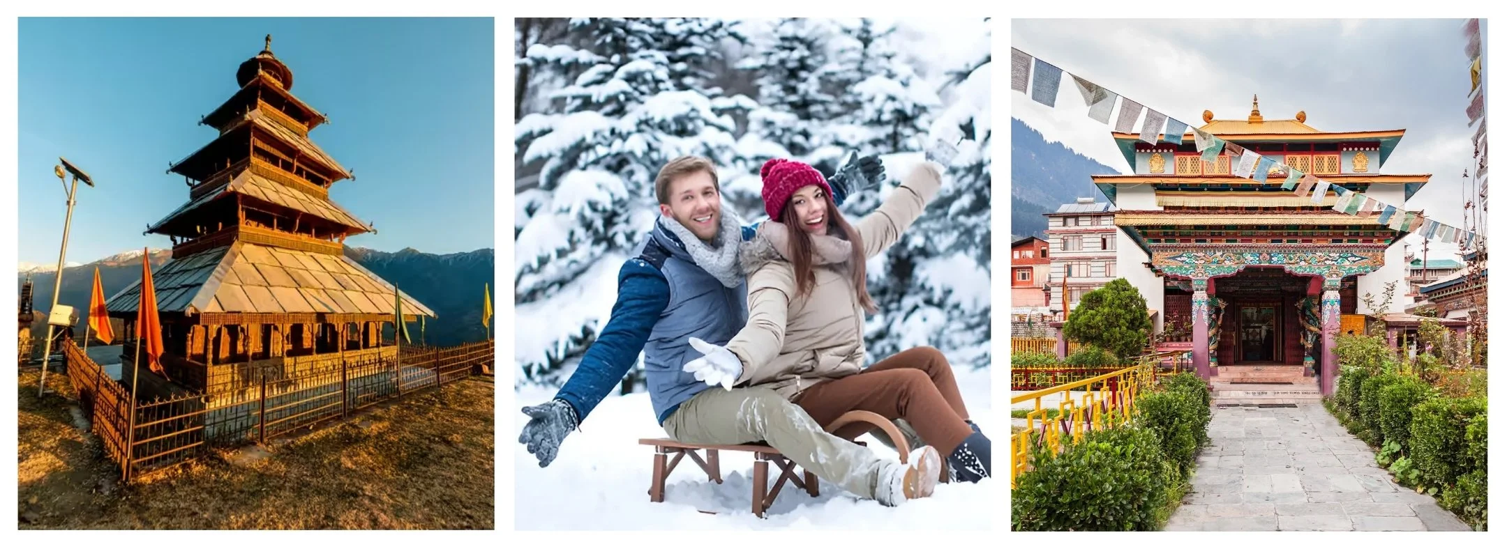 Arrive in Manali in the morning and meet your representative. You will be transferred to your hotel to freshen up. After breakfast, proceed for a half-day sightseeing tour covering the famous Hadimba Devi Temple, Manu Temple, Vashisht Temple with its natural hot springs, the Club House, and the Tibetan Monastery. In the evening, enjoy leisure time for a relaxed stroll and shopping at Mall Road. Return to the hotel for an overnight stay in Manali.